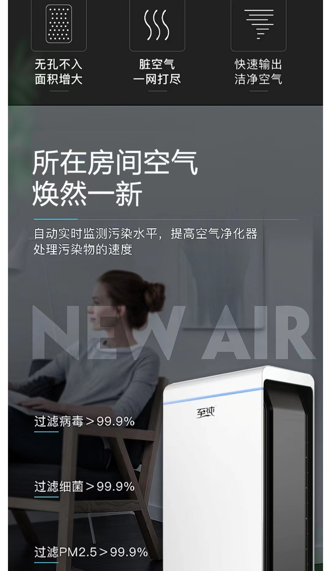 紫外線殺菌大風(fēng)量空氣凈化器,八級過濾,去除霧霾、甲醛、大顆粒、細(xì)菌、二手煙、異味等空氣污染物,同時配備紫外線殺菌,功能強大。雙效凈化空氣中攜帶細(xì)菌病毒的顆粒污染物,攔截率高達(dá)99.9%,UVC紫外線殺菌率高達(dá)99.8%,適合多場景適用,持久保持室內(nèi)空氣質(zhì)量。