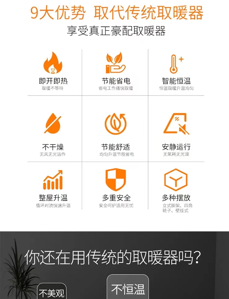 全新石墨烯取暖技術(shù),制熱**,升溫迅速、均勻,15分鐘全屋暖洋洋。