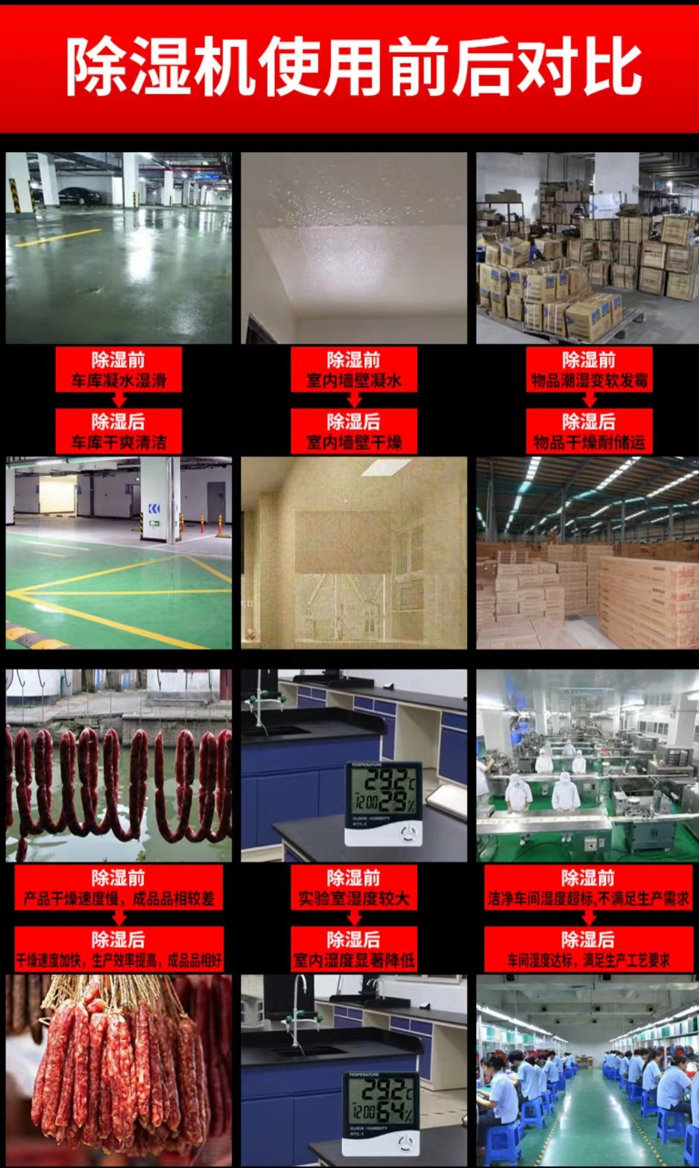 工業(yè)除濕機企業(yè)、單位使用較多,主要用于工廠車間、地下車庫、倉庫、檔案室、圖書館、電腦機房等大面積除濕場所