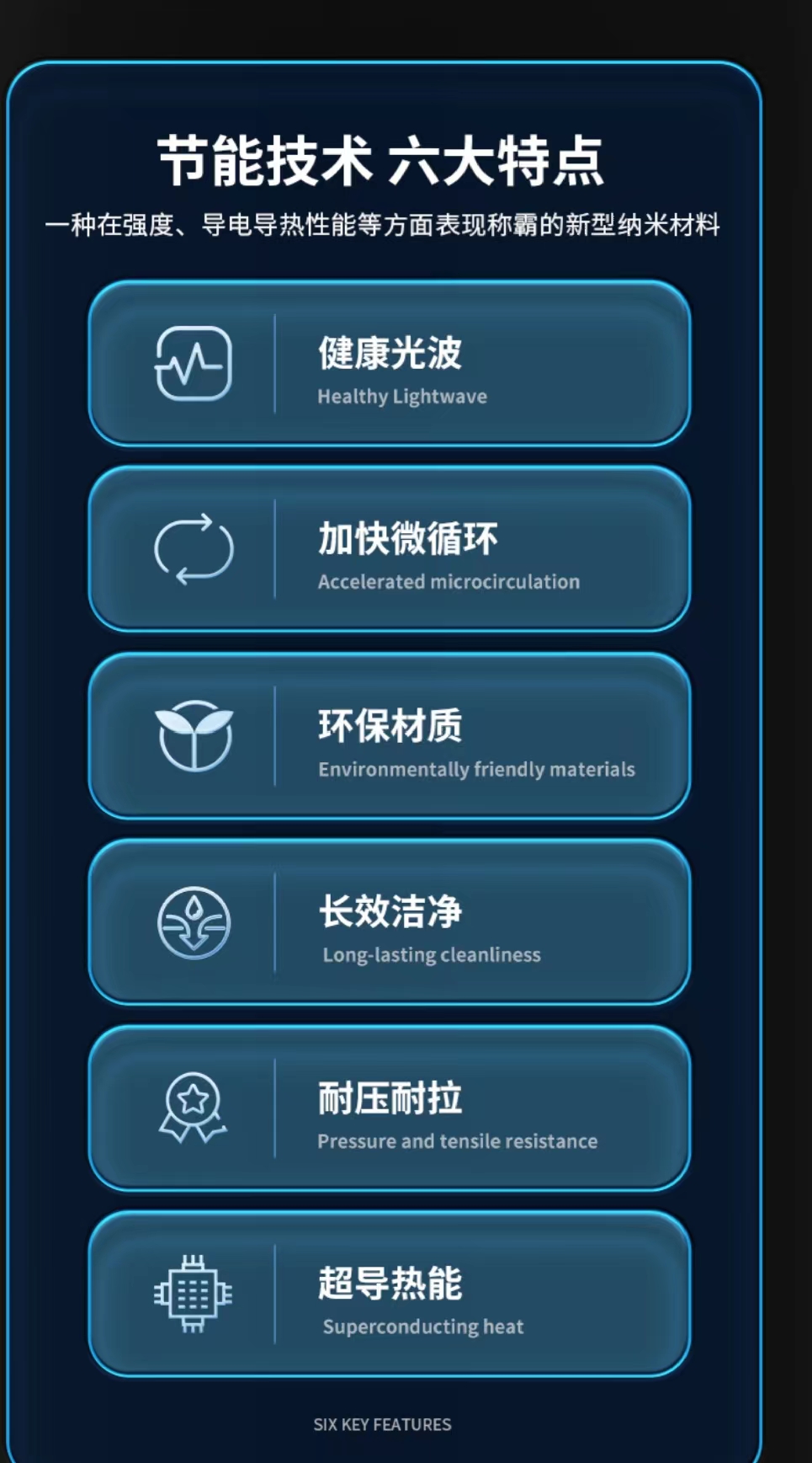 (3)這樣一來,熱氣就能在室內(nèi)大面積加熱室內(nèi)的空氣了。所以不需要靠近石墨烯取暖器,也能感受到溫暖。這也是為什么我們進(jìn)來客廳的時(shí)候,在門口就能感受到暖意。而且它的熱幕簾效應(yīng),有超大熱量,所以室內(nèi)的熱空氣對(duì)流循環(huán),除了客廳,廚房,臥室,甚至家里的每個(gè)角落,都能享受到石墨烯取暖器帶來的溫暖。石墨烯在發(fā)熱的時(shí)候,會(huì)釋放66%左右的6-16um遠(yuǎn)紅外線來輻射熱量,這個(gè)波段接近人體波長(zhǎng),容易滲透我們的皮膚,被我們吸收。這種感覺就像是太陽(yáng)光照在我們的身上的感覺是一樣的,讓人從外到內(nèi),都是溫暖的感覺,關(guān)鍵是,它還不宜共享室內(nèi)的溫度變化。在家里就能享受太陽(yáng)般的溫暖,真的是超級(jí)的幸福。