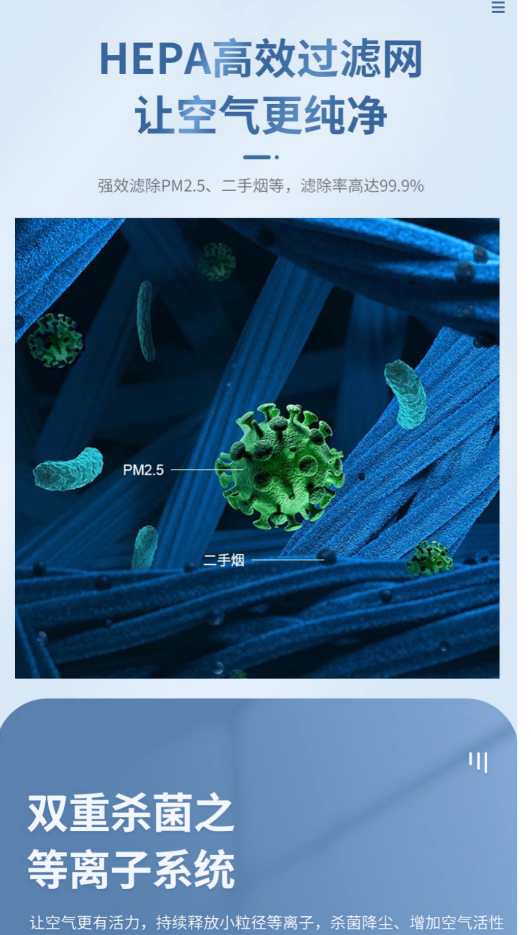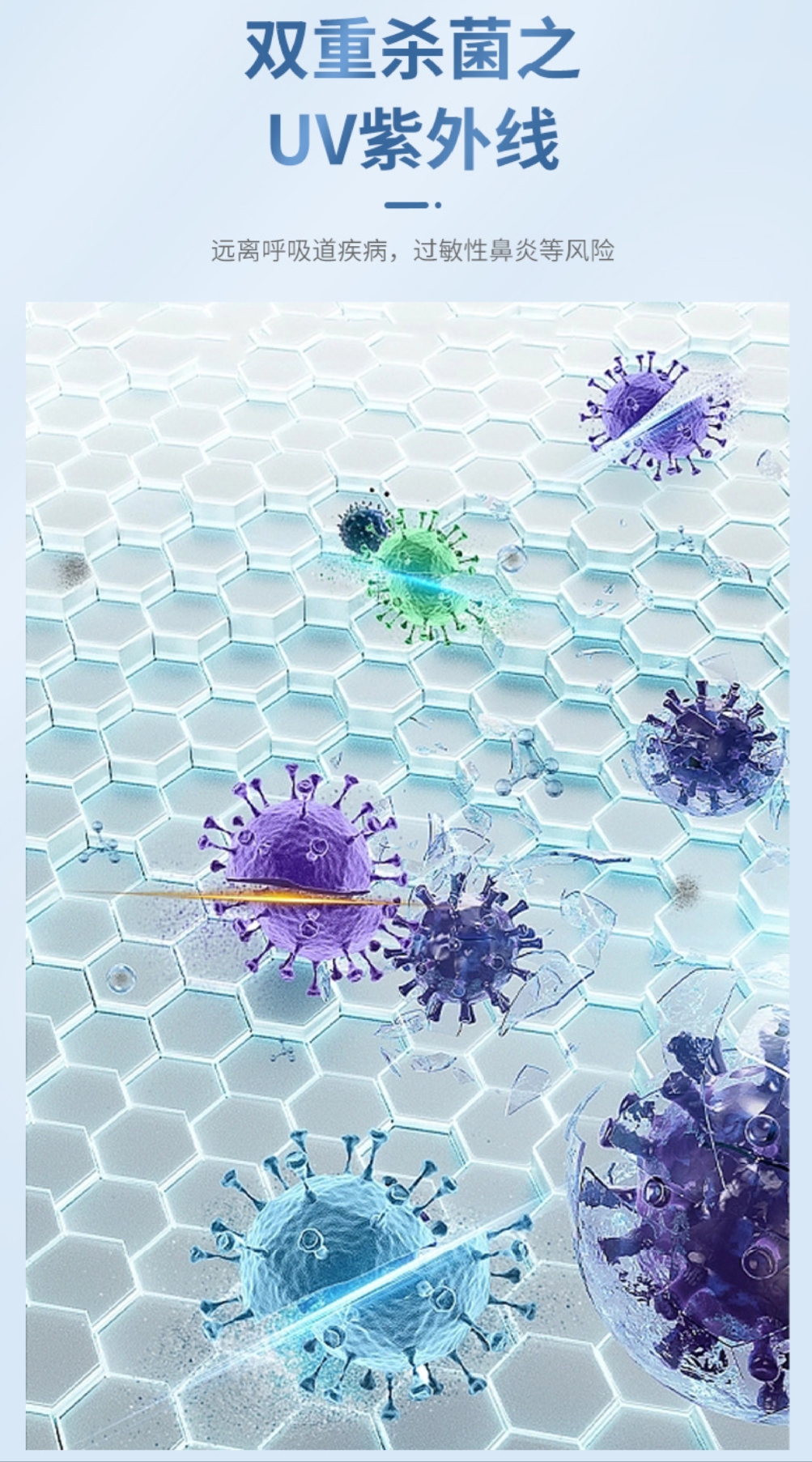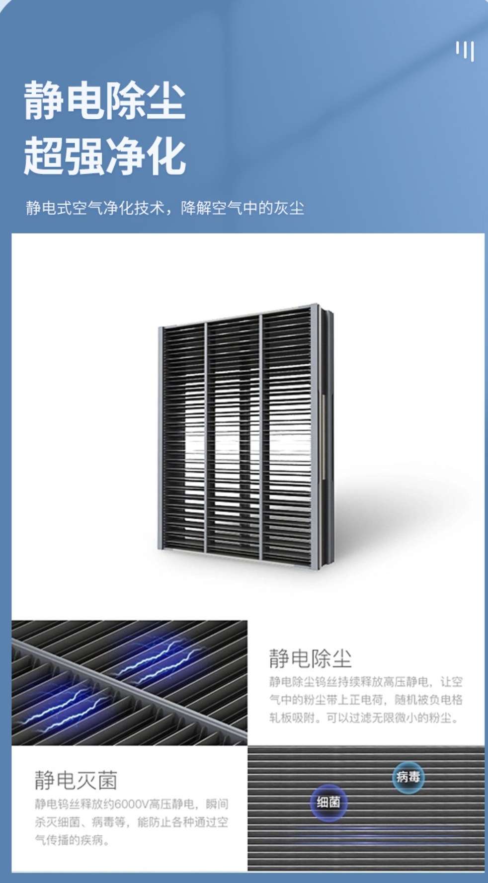 等離子體殺菌網(wǎng),高能離子場域強效殺菌;高密度強電場自摩擦除菌技術等不同級別的高科技除菌濾網(wǎng),能夠安全有效殺滅各種細菌和病毒,這些技術的濾網(wǎng)除菌比傳統(tǒng)的UV除菌或者臭氧除菌更安全,也更有效