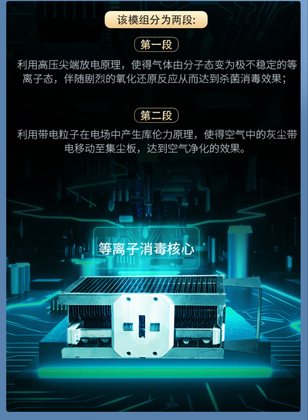 ③等離子醫(yī)用空氣消毒機工作原理。在均衡的正負離子空氣電子脈沖放電時獲得一定的能量,當電子與細菌和霉菌孢子發(fā)生碰撞時,所傳遞的能量與化學鍵的鍵能相同或者相近時,打破這些鍵,細菌和霉菌再也不能繁殖。