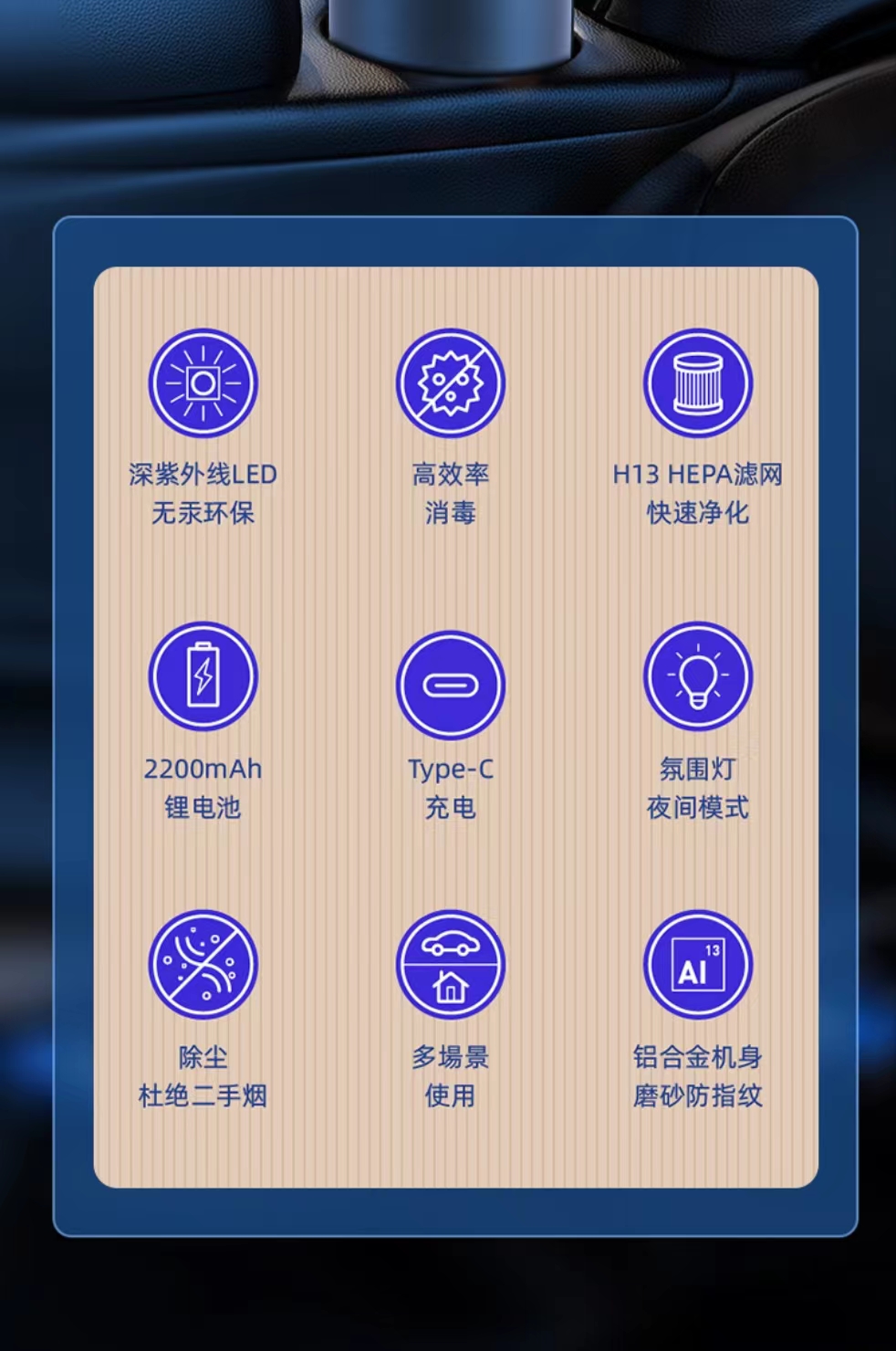 紫外線車載空氣凈化器是專用于凈化汽車內(nèi)空氣中的PM2.5、有毒有害氣體(甲醛、苯系物、TVOC等)、異味、細(xì)菌病毒等車內(nèi)污染的紫外線車載空氣凈化設(shè)備。