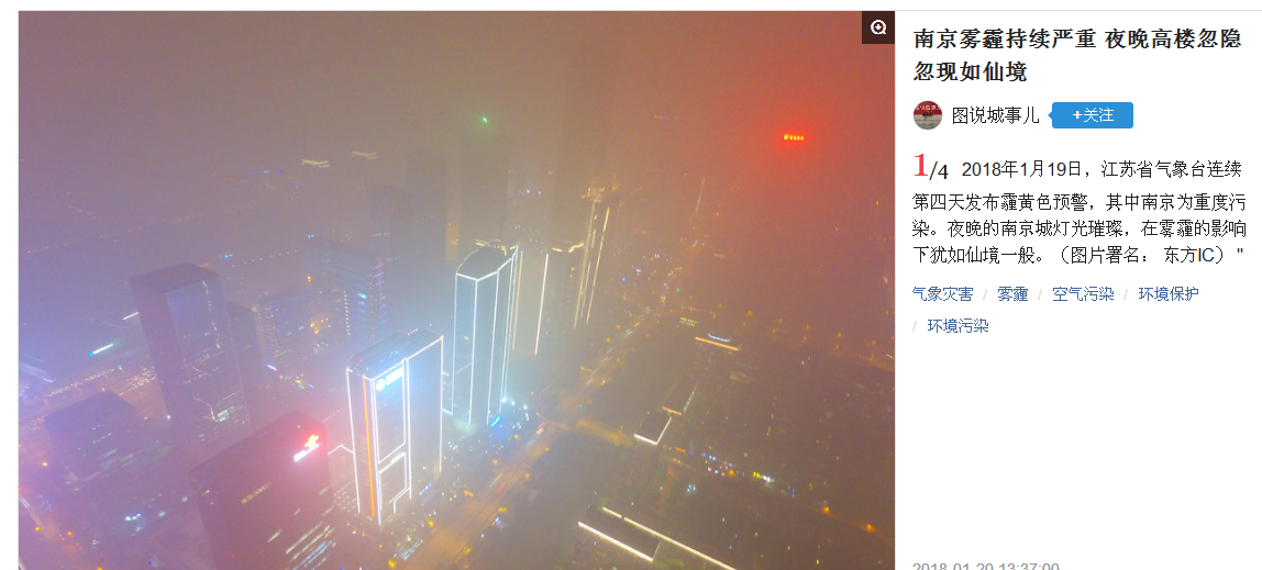 南京霧霾持續(xù)嚴(yán)重 夜晚高樓忽隱忽現(xiàn)如仙境