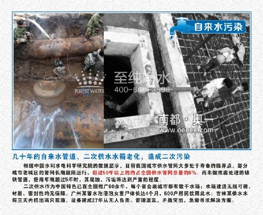 第六幅:幾十年的自來水管道、二次供水水箱老化,造成二次污染