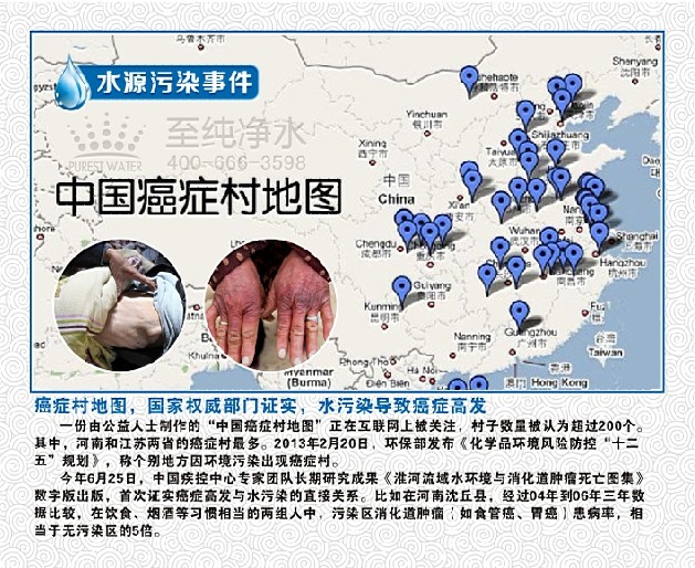 第五幅:癌癥村地圖,國家權威部門證實,水污染導致癌癥高發(fā)