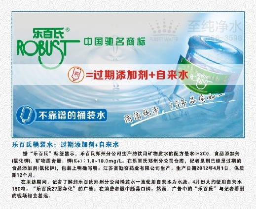 第八幅:去年6月報道,樂百氏桶裝水:過期添加劑+自來水
