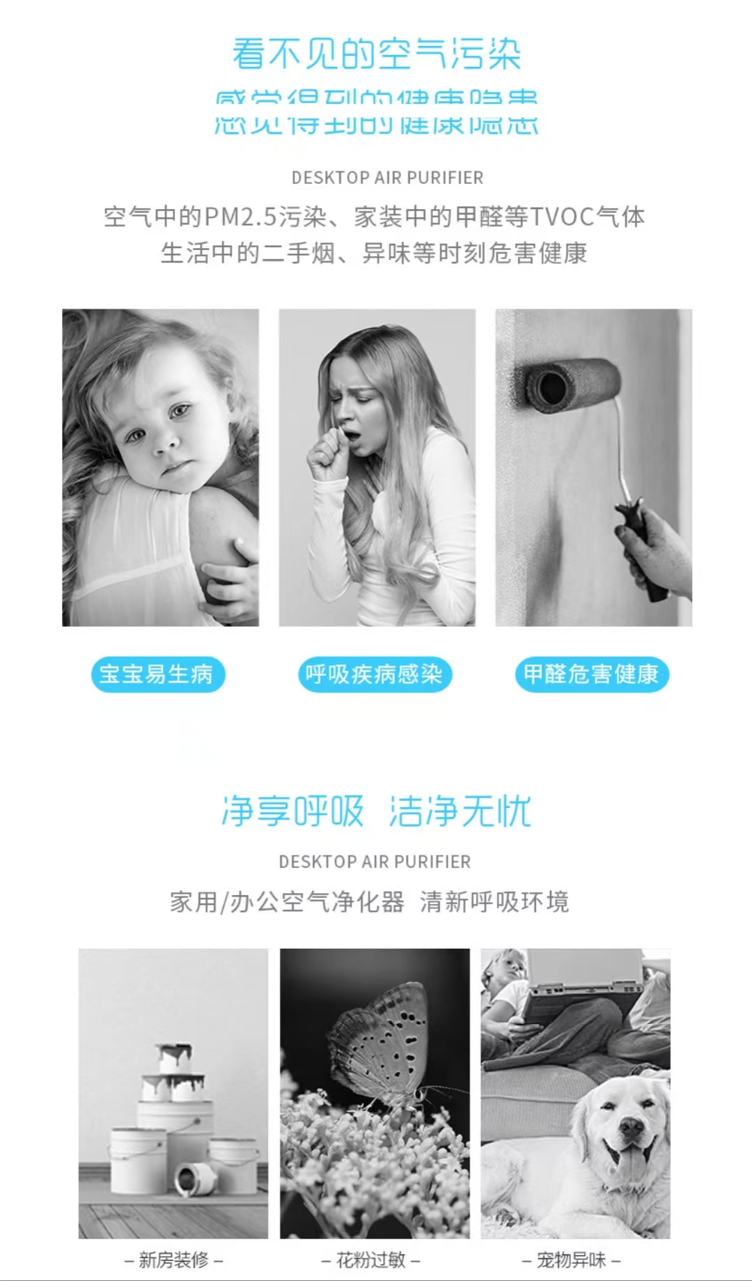 尤其是有寶寶的家庭或者鼻炎患者,更應(yīng)該安排一個(gè)桌面空氣凈化器有的凈化器比較大,特別占地方它集紫外線消毒,殺菌,除甲醛為一體體積小顏值高,還有高清觸控led屏空氣狀態(tài)也可以通過指示燈顯示,麻雀雖小五臟俱全!