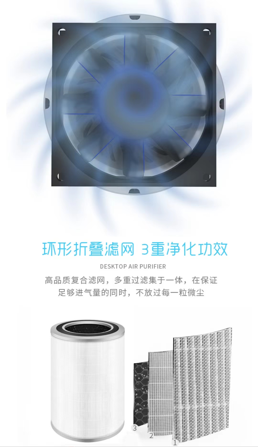 桌面空氣凈化器其實(shí)是通過——室內(nèi)的空氣循環(huán)把一些不干凈?的空氣由機(jī)體內(nèi)的空氣過濾器過濾后,將各種空氣污染分解或吸附,然后再順著固定在出風(fēng)口的負(fù)離子發(fā)生器,不停的把空氣電離,接著被風(fēng)扇吹出去,使空氣變得清新。