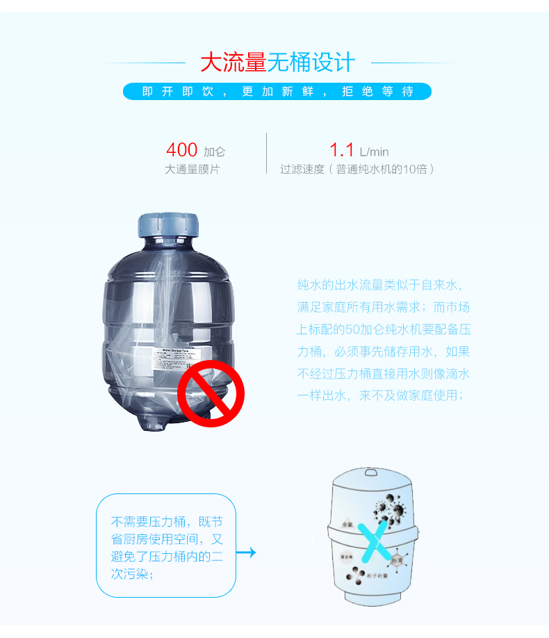 - 產(chǎn)品簡(jiǎn)介:至純400加侖反滲透智能凈水機(jī),無桶大流量設(shè)計(jì),內(nèi)置TDS筆,并且與手機(jī)APP相連,是國(guó)內(nèi)頂級(jí)的家用純水機(jī)。