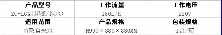 過濾工藝:一體PP棉+載銀活性炭+一體PP棉+RO膜(世韓膜)或者超濾膜+小T33